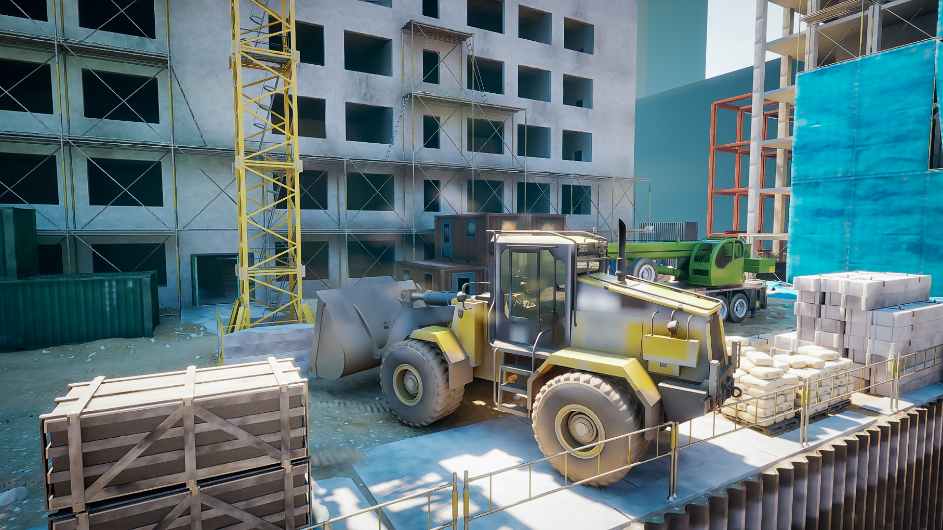 展的痛點,碩博提供工程機械仿真整套解決方案,操作場景、訓練科?、顯?效果